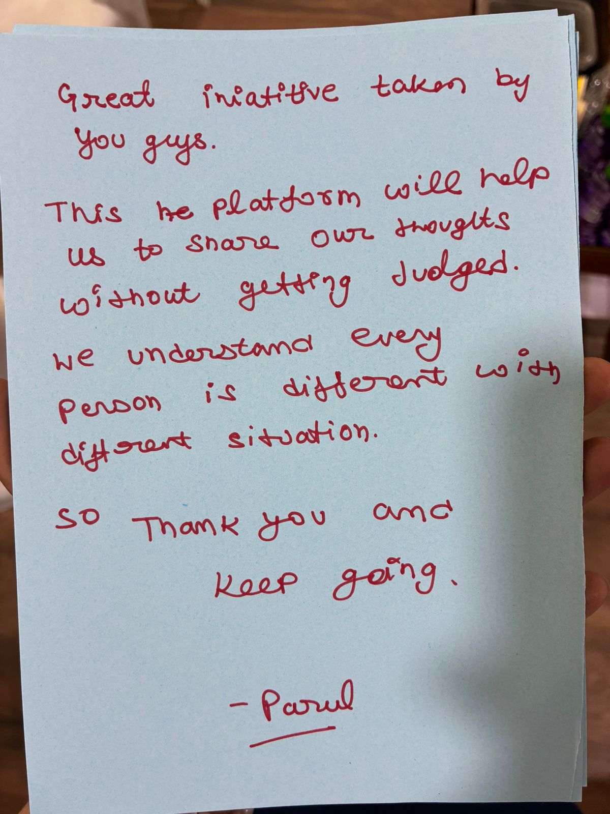 I am really grateful to all the women who showed up, who chose themselves for those few hours. They gave themselves a chance to speak their hearts out, make new connections, and take home the happiness and joy. Hearing their stories reminded me just how much strength sits in one room.